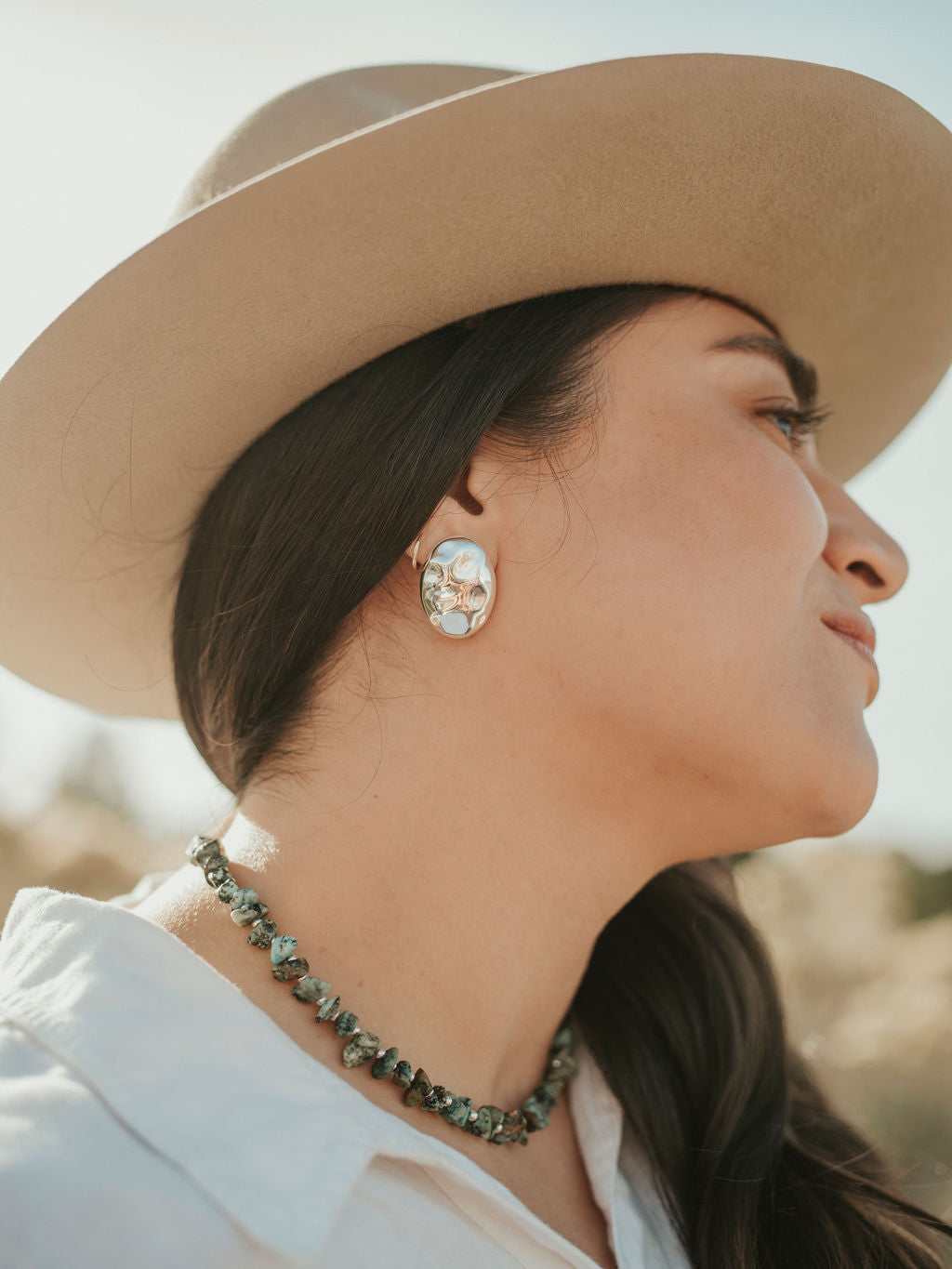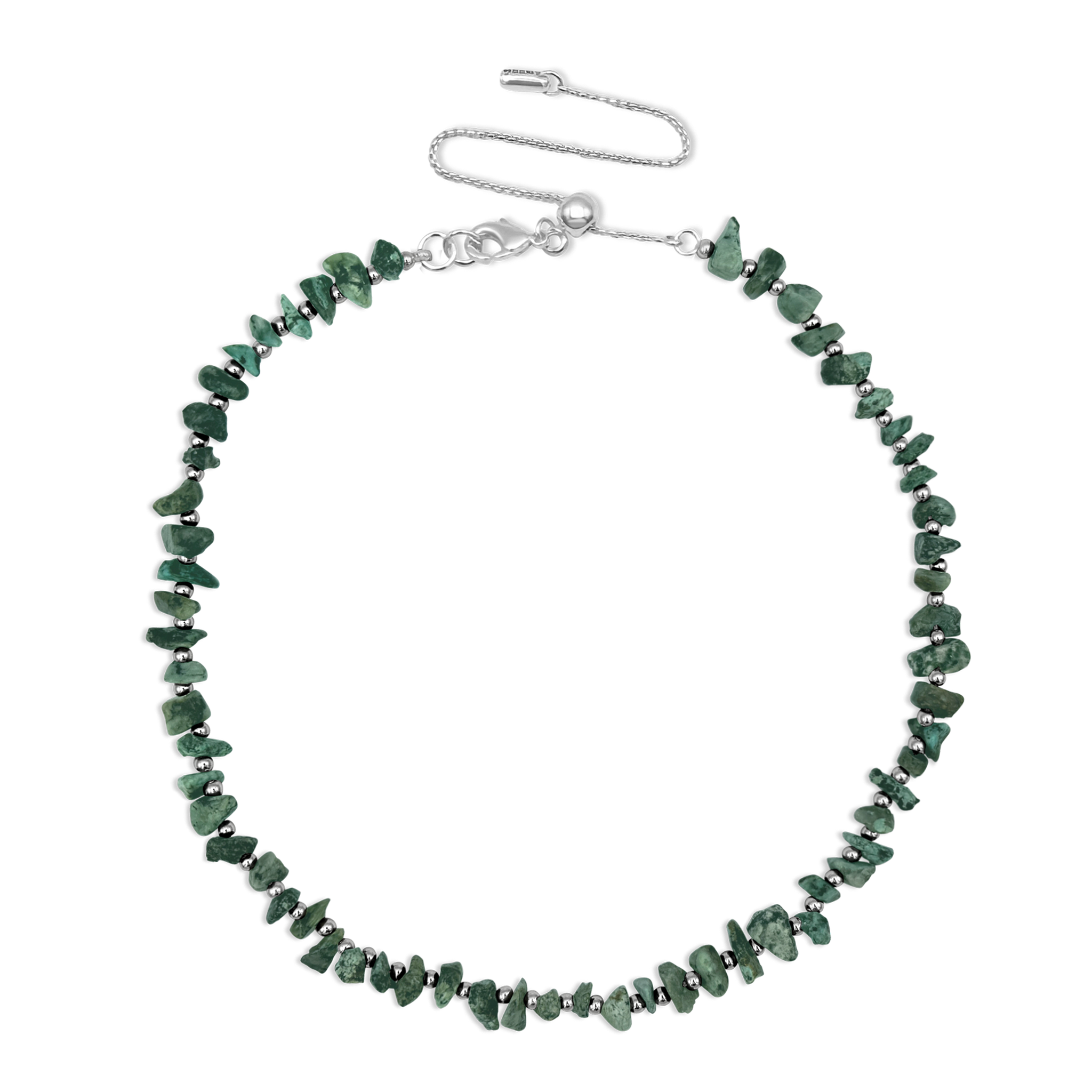 Made with African Turquoise, this handmade necklace brings natural texture to a modern look, reflecting the pared-back aesthetic of New Mexican minimalism. An easy-to-adjust silicone sliding extender makes it effortlessly versatile and perfect for layering with other necklaces or chains.