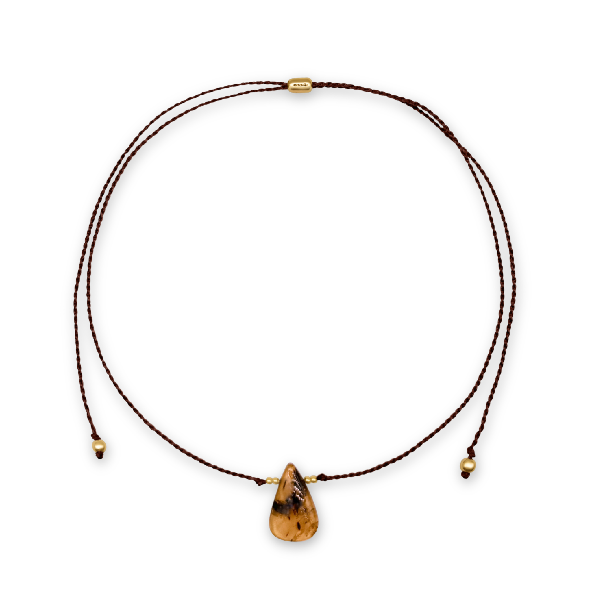 A polished Chiapas Amber pendant brings warm, golden tones to this minimalist cord necklace, showcasing amber’s ancient origins and long association with protection and cleansing. Strung on durable poly cord with a 14k gold plated silicone sliding adjuster, the length can be easily customized for effortless everyday wear. Due to the natural characteristics of amber, shape and pattern may vary.