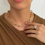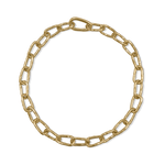 Wavy gold links meet a functional hook clasp in a chain that balances utility and refinement. The clasp allows for easy length adjustments or lariat-style wear, making it a versatile piece that complements everything from crisp tailoring to relaxed silhouettes.