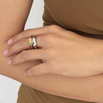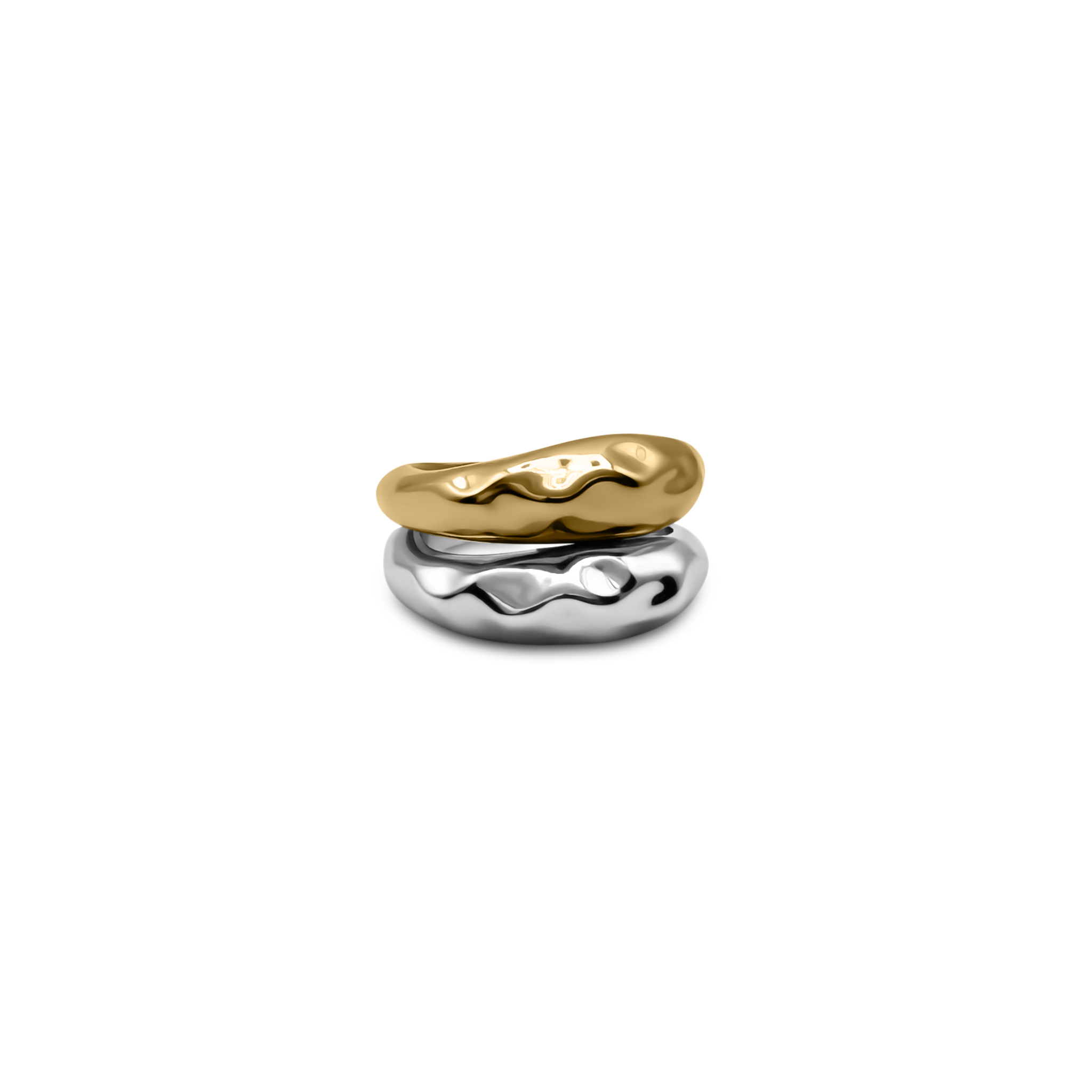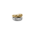 Versatile, wear-anywhere rings designed to be stacked or worn solo. Crafted in wavy gold and platinum, they take inspiration from the fluid, sculptural forms of weathered caves.