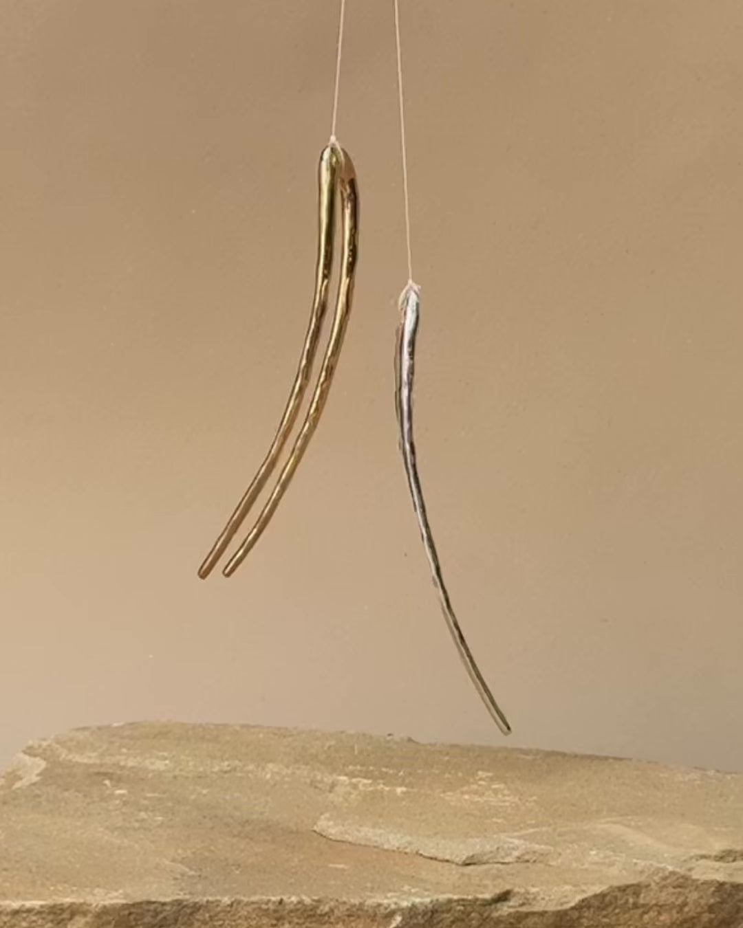 This sleek U-shaped hairpin features an undulating silver finish that adds texture to its minimalist form. Perfect for securing a twist or bun, it blends function with sculptural style.