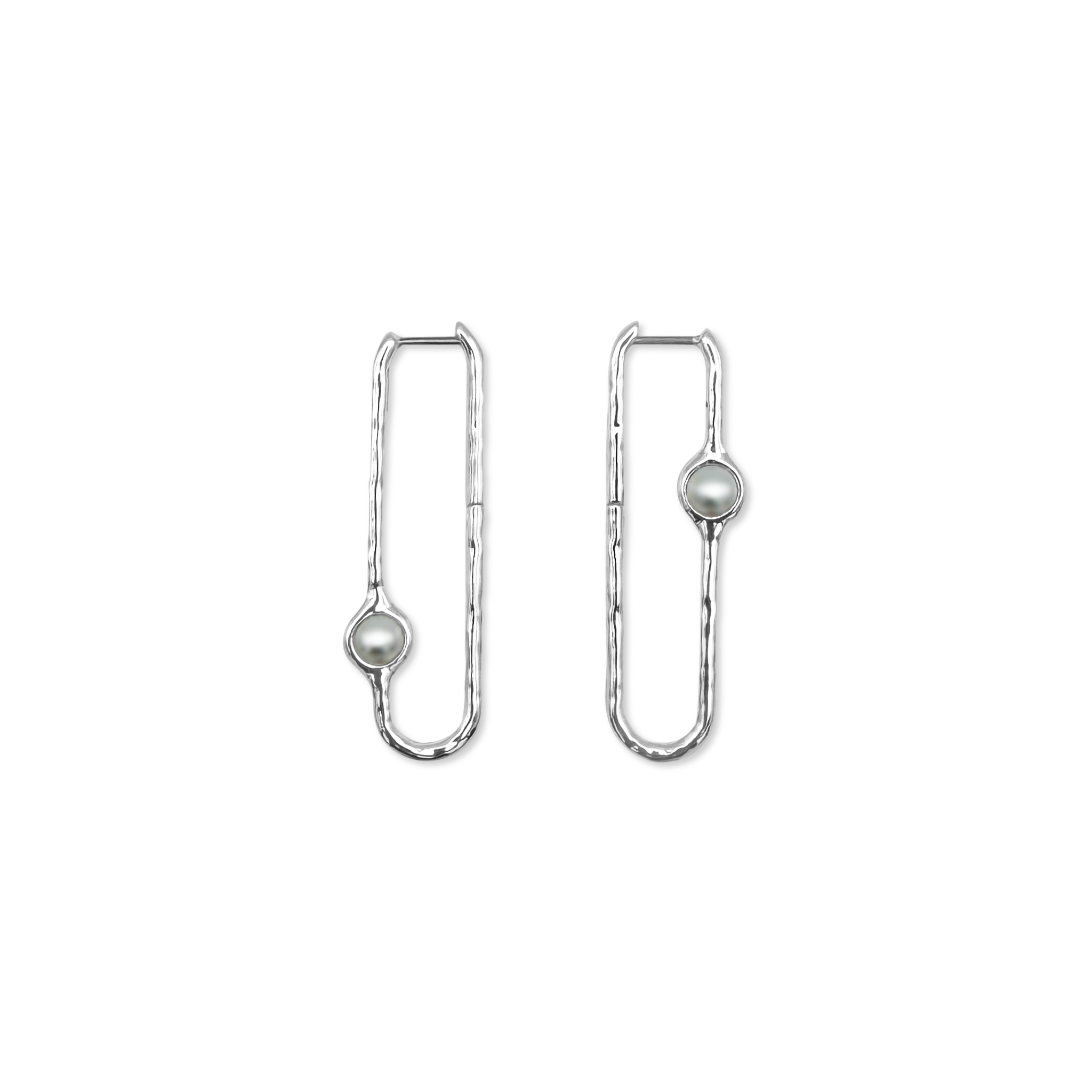 Echoing the curves carved by wind and water, these drop earrings pair fluid silver lines with asymmetrical pearls.