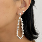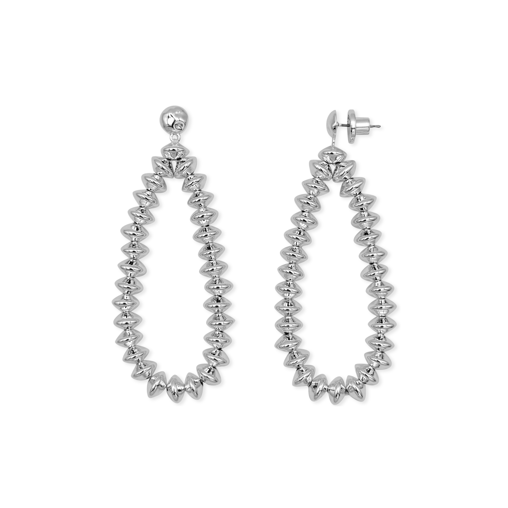 These sculptural teardrop earrings are lined with smooth, domed silver discs that catch the light from every angle. Bold yet airy, they add texture and movement to any look. Comes with oversized silicone-sliding backs for added support and comfort.